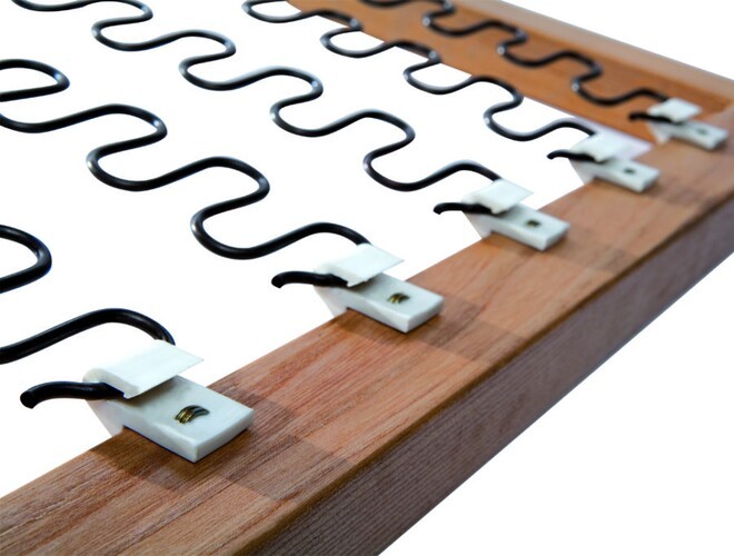 Крепление пружин к основанию обычно бывает поперечным. От габаритов и назначения мебели зависит их количество. Благодаря пружине-змейке, основание мягкой мебели становится абсолютно ровным и лишенным качки. В процессе эксплуатации пружина не будет являться источником лишнего шума.